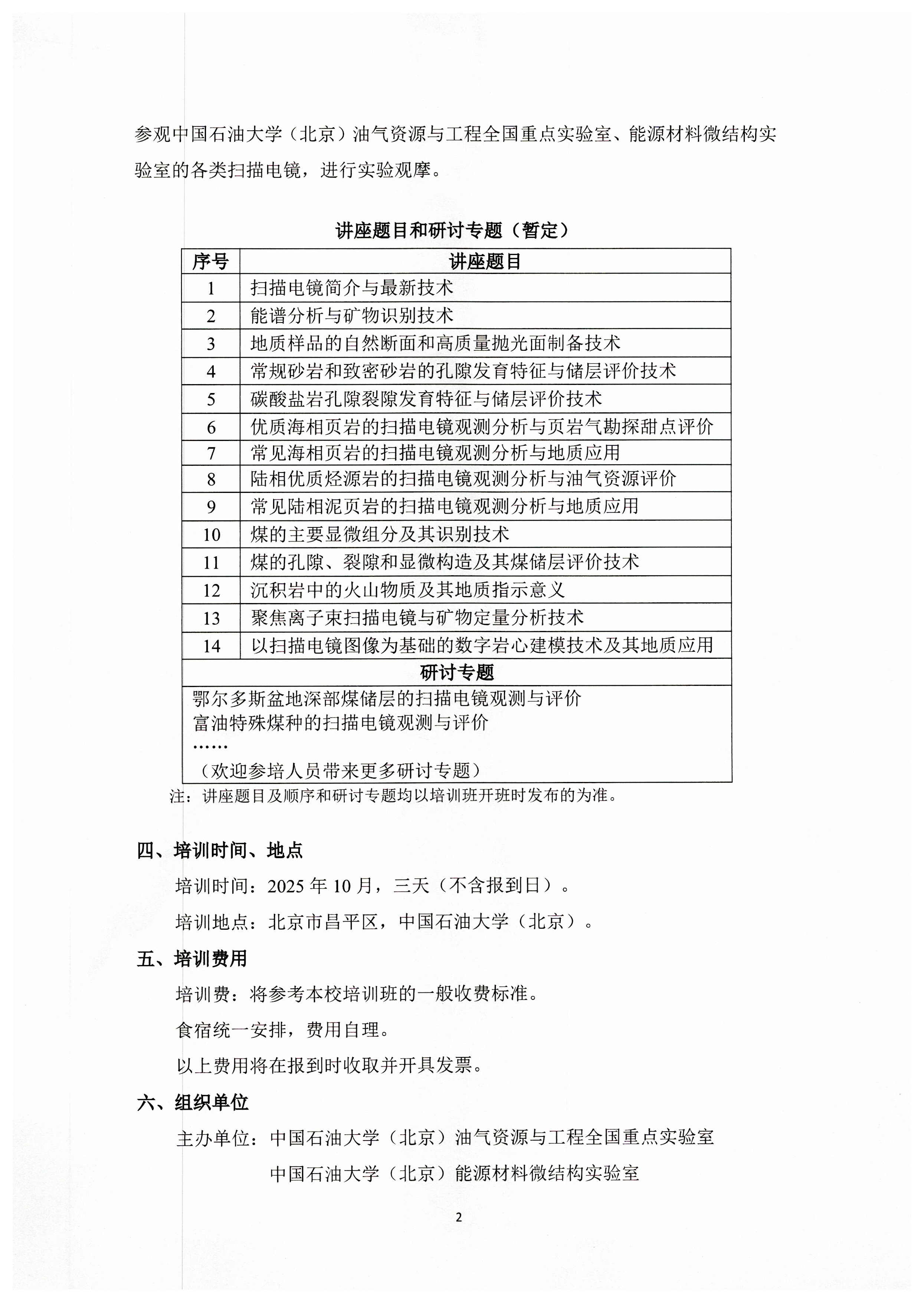 关于举办“扫描电镜在非常规油气勘探开发中的应用技术培训班”的通知(第1轮)