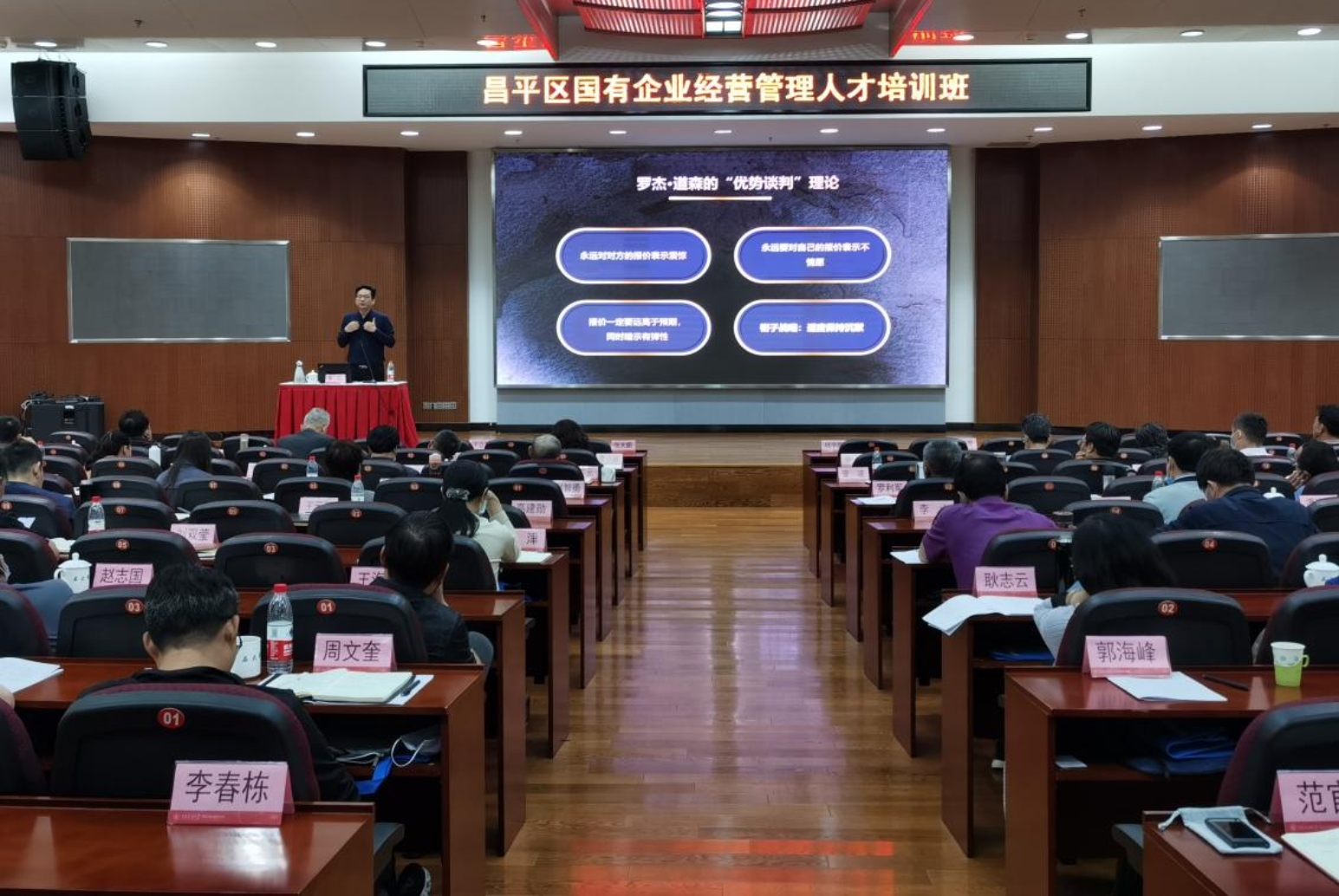 本次培训班共汇集了来自昌平区国资委及其下属的18家企业的108名学员,全部为企业经营管理部门的负责人。此次培训内容涉及中国现今国际关系、谈判术、加强企业股权投资项目投后管理、加强企业股权投资项目投后管理、人力资源管理等专题讲座和昌平华都酒厂现场学习,学院聘请了国际关系学院、北京交通大学、首都经贸大学等高校教授以及新浪财经专栏撰稿人、灯塔知行社创始人等优秀师资进行授课。