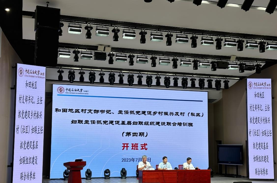 2023年7月24日上午,由中共新疆维吾尔自治区和田地区委员会组织部委托中国石油大学(北京)网络与继续教育学院承办的“和田地区村支部书记、主任抓党建促乡村振兴及村(社区)妇联主任抓党建促基层妇联组织建设联合培训班(第四期)”顺利开班。中共新疆维吾尔族自治区和田地区委员会组织部部长、党校校长罗彦林、中国石油大学(北京)副校长张广清出席开班式并讲话,中国石油大学(北京)网络与继续教育学院院长陈桂刚主持开班仪式。