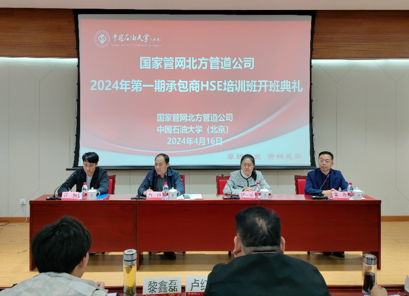 4月16日,中国石油大学(北京)承办的2024年第一期承包商HSE培训班在东校园培训基地第二报告厅顺利开班。国家管网北方管道公司安全环部副经理白杨,中国石油大学(北京)网络与继续教育学院副院长刘一凝,国家管网北方管道公司项目管理中心科长许旭出席开班典礼并讲话。