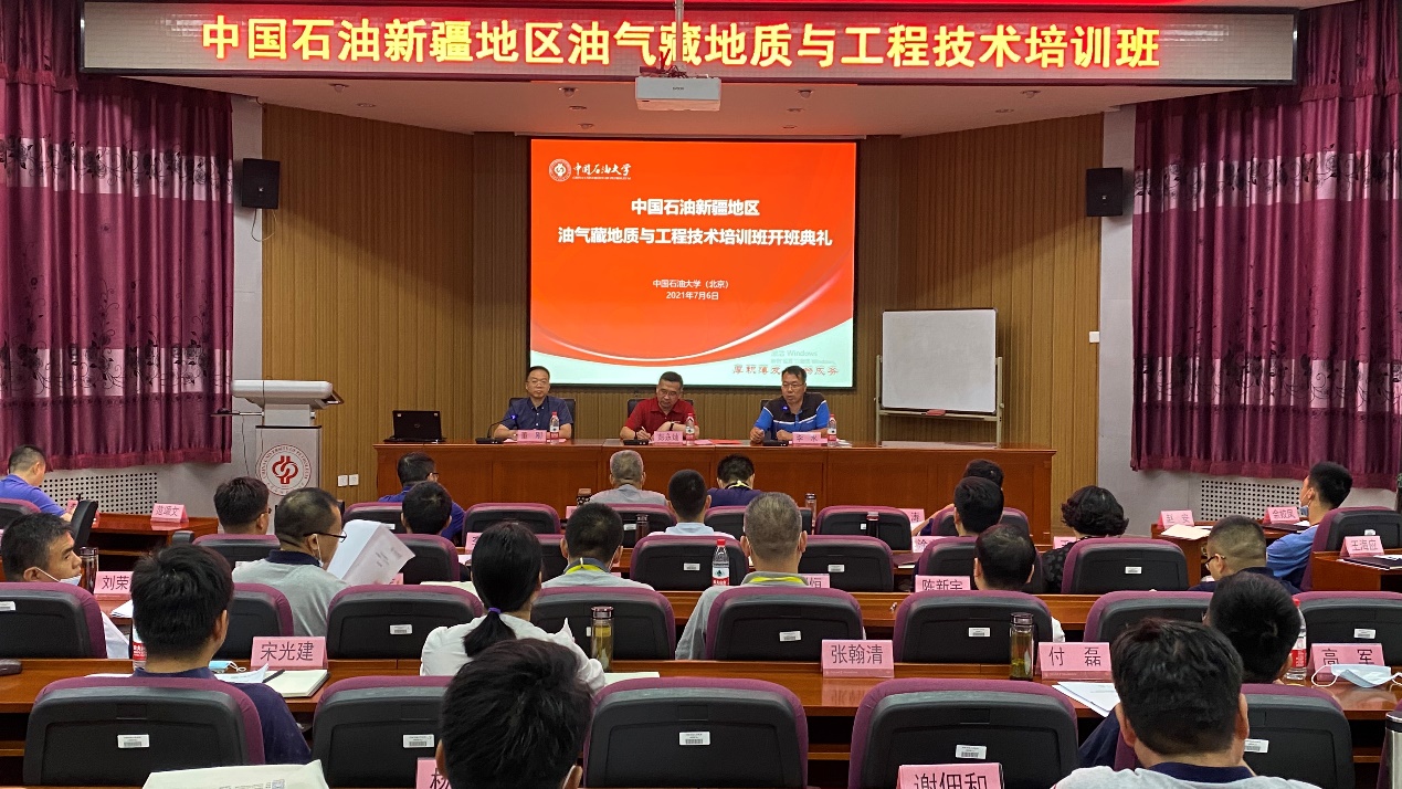 2021年7月6日,由我校网络与继续教育学院承办的“中国石油新疆地区油气藏地质与工程技术培训班”在东校园培训基地第一报告厅隆重开班。中国石油塔里木油田开发处副处长彭永灿、中国石油大学(北京)网络与继续教育学院副院长李水出席开班典礼并讲话,开班典礼由中国石油大学(北京)网络与继续教育学院高端培训中心主任董刚主持。