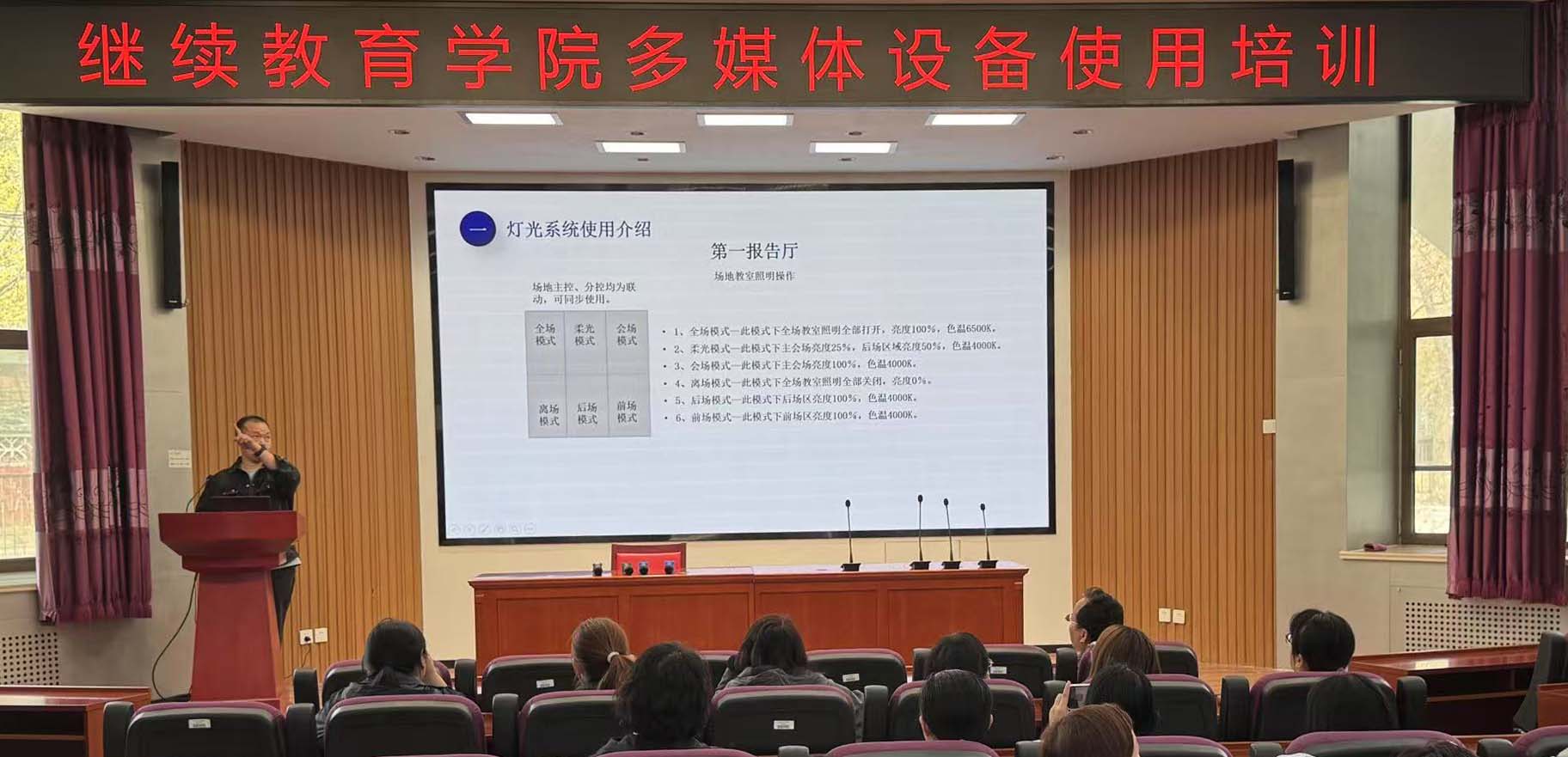 为进一步提升学院信息化建设水平,确保升级改造后的多媒体设备高效运行,中石大继续教育学院于4月10日下午在东校园培训基地第一报告厅举办了多媒体设备使用专题培训。本次培训由学院统一组织,各部门相关工作人员积极参与。