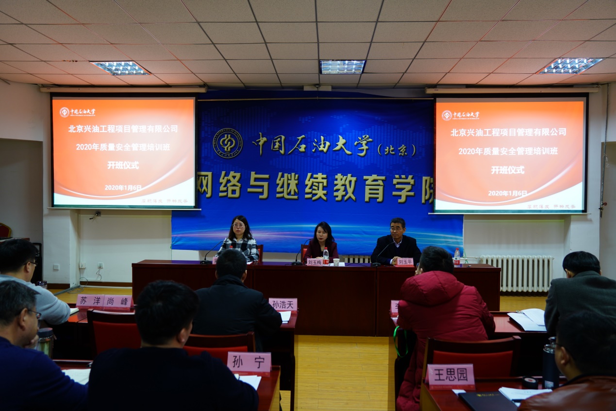 2020年1月6日,由我校网络与继续教育学院承办的“北京兴油工程项目管理有限公司2020年质量安全管理培训班”在我校东校园培训基地第二报告厅隆重开班。委培方领导北京兴油工程项目管理有限公司总经理兼党委书记刘玉梅出席开班仪式并讲话,中国石油大学(北京)网络与继续教育学院副院长刘玉平出席开班仪式并致欢迎词。
