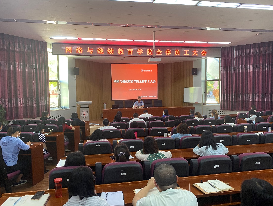 2022年9月19日,学院在东校园培训基地第1报告厅召开了全体员工大会,院长陈桂刚布置本学期工作。