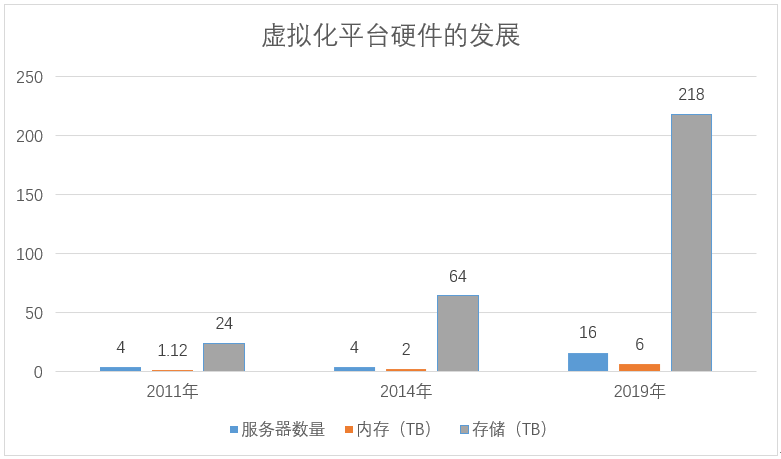 虚拟化平台的软件采用的VMware的vsphere,从最初的5.0版本开始,几经升级,到目前平台使用的6.7版本,管理端也由最初的客户端转换为访问方便的html5,提高了运维效率。