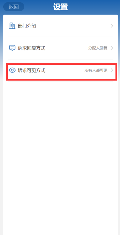 点击【设置】-【诉求可见方式】即可设置所有人可见或仅回复人可见。而管理员则默认可见到部门所有诉求。