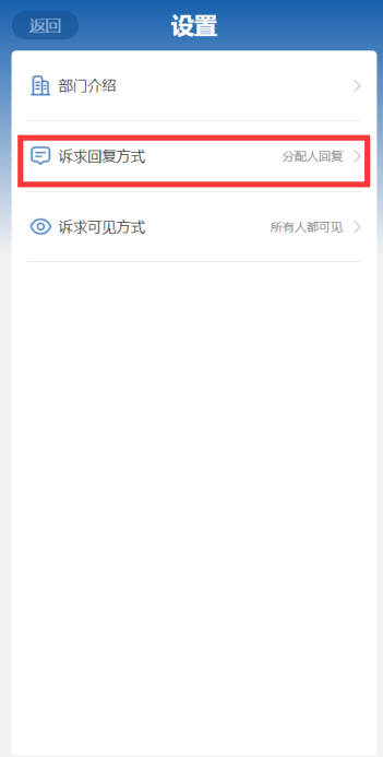 点击设置-诉求回复方式,即可选择诉求回复方式,以下三种回复方式。