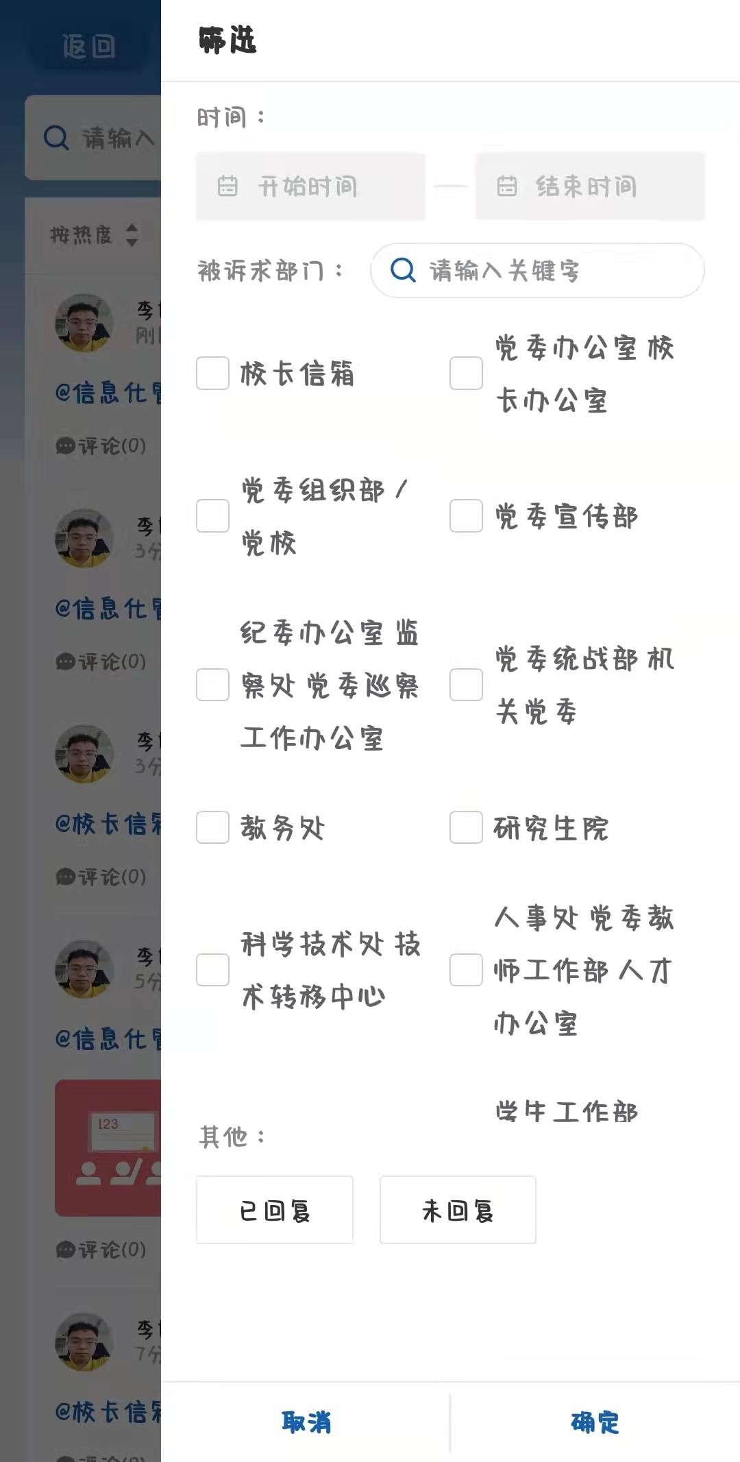 如果设置所有人都可见则本部门内所有教职工都可看到本部门接收的诉求。