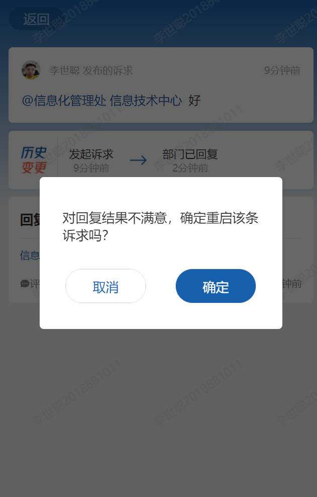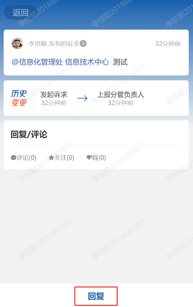 答:当回复人不在本部门时,其在本部门的回复、查看诉求的权限消失,仅存留曾在本部门对诉求的回复内容,其余信息不保留。