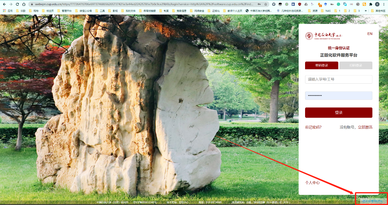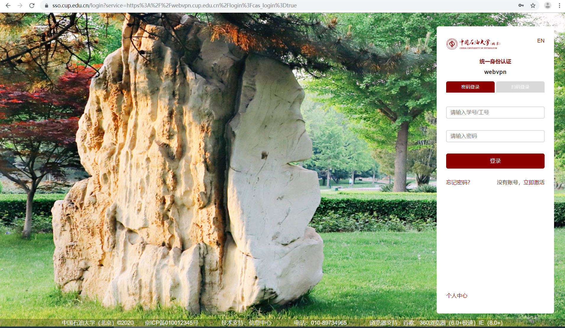 1.在浏览器中输入https://webvpn.cup.edu.cn,进入登录页面。
