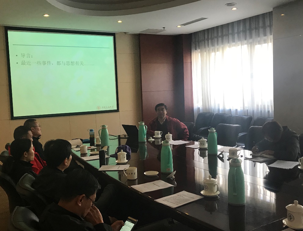 曹培强老师以“人类的思想、宗教与文明进程”为主题展开学习。从习近平总书记关于宗教工作的重要讲话精神出发,结合曹老师自身关于宗教工作的多年研究,为全体党员深刻讲解,并同党员开展抵御和防范校园传教工作的讨论。