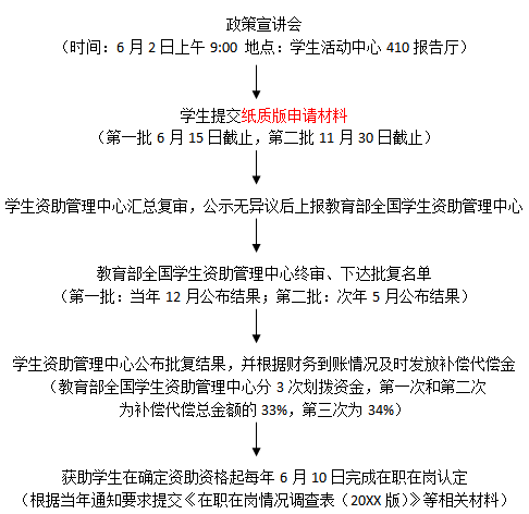 1.各单位要高度重视,并安排专人(各单位资助负责老师)全程负责此项工作,且每个毕业班指定1名负责人(为有意向申请学生最佳),资助负责老师带领毕业班辅导员与毕业班负责人参加政策宣讲会,并负责向本班宣传政策。