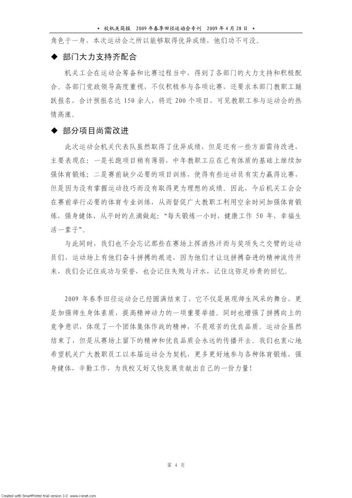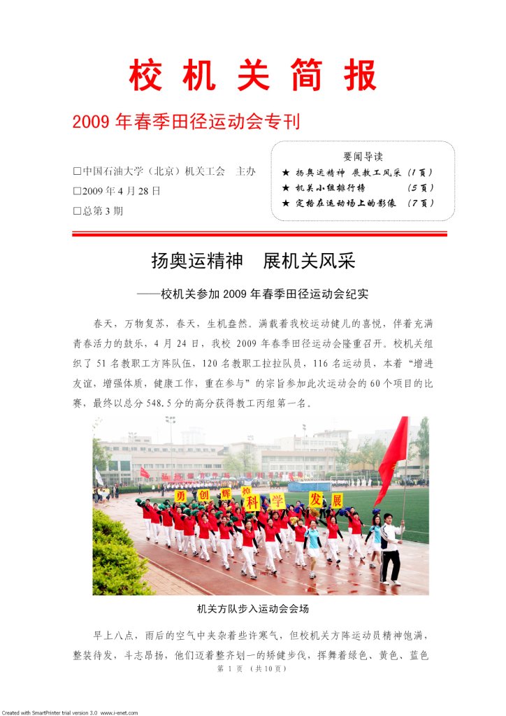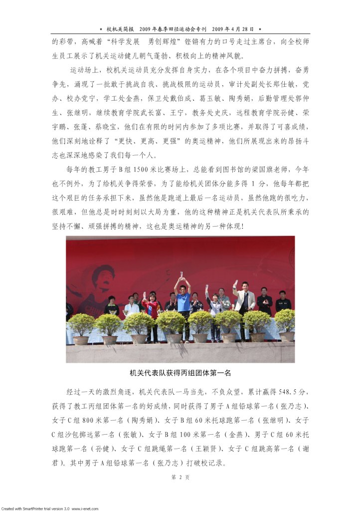 扬奥运精神 展机关风采——校机关参加2009年春季田径运动会纪实